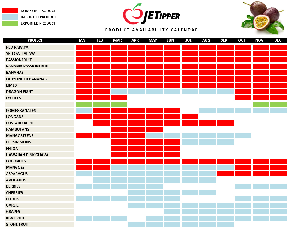 Supported by Jet Direct’s modern, efficient management, we deliver quality imported produce at key times during the year at prices that tempt local consumers. Selective importation also helps maintain consumer interest in certain produce lines which is reflected in increased demand during the Australian season.